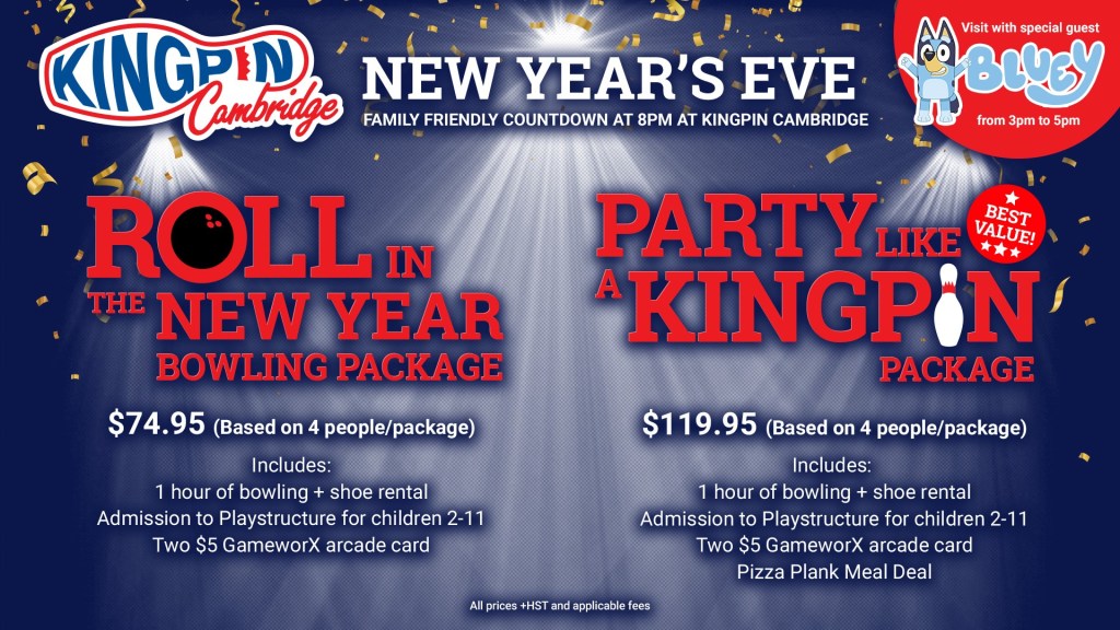 New Year’s Eve at Bingemans FunworX, Kingpin Bowlounge, and Kingpin Cambridge