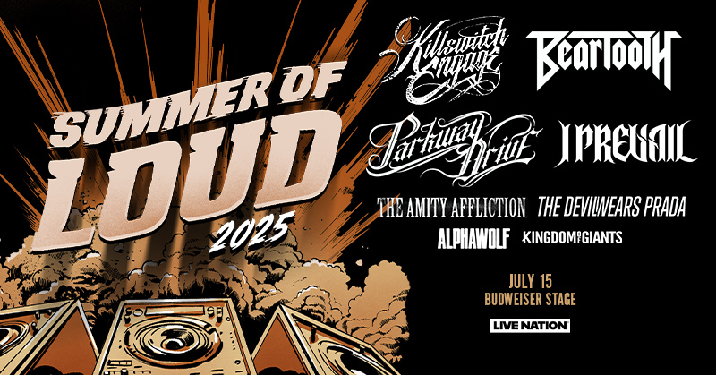 Sound Talent Group/Live Nation is proud to announce the Summer of Loud Tour – an epic bill featuring hard rock platinum acts, genre mainstays, and up and comers. The tour features four rotating headliners, who are the heavyweights of the genre: Beartooth, I Prevail, Killswitch Engage, and Parkway Drive. The support headliners are The Devil Wears Prada and The Amity Affliction. TX2 will open June 22 through July 2; Kingdom of Giants will open July 5 through July 15; and Dark Divine will serve as openers from July 16 through July 27.
