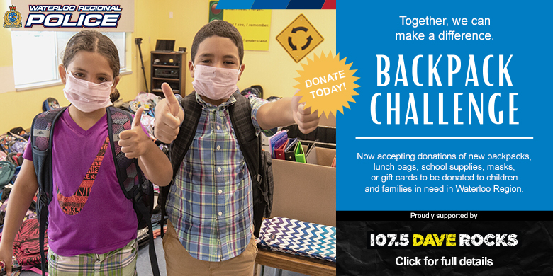 The Waterloo Regional Police Service is once again challenging the community to take part in its fourth annual Backpack Challenge!