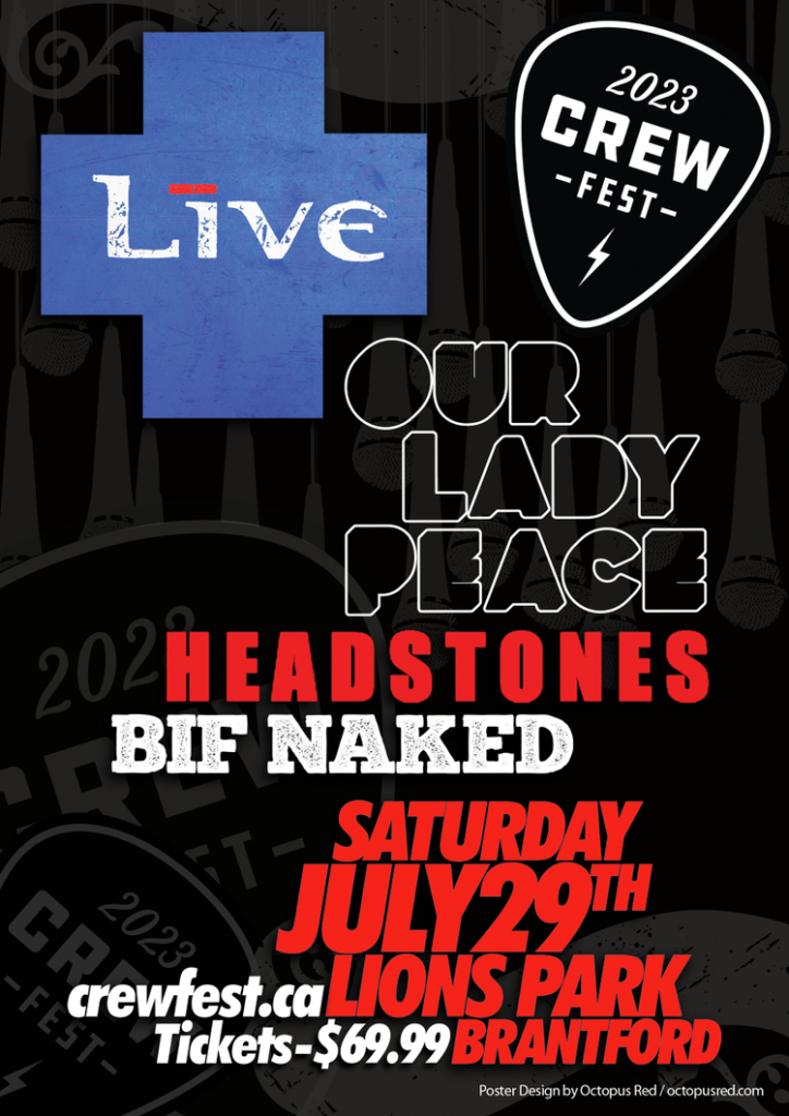 Crewfest ft. LIVE, Our Lady Peace, Headstones & Bif Naked Where Lions Park, 220 Colborne St, Brantford Map When Jul 29/23 12:00 AM - Jul 29/23 12:00 AM Age All Website https://www.crewfest.ca/ NEW NAME. SAME TEAM. SAME GREAT ROCK FESTIVAL. WTFEST IS NOW CREW FEST. SATURDAY, JULY 29th, 2023 @ Lions Park in Brantford