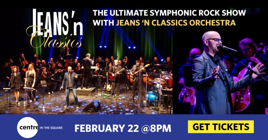 JEANS ‘N CLASSICS at Centre in the Square Where Centre in the Square, 101 Queen St N, Kitchener, N2H 6P7 Map When Feb 22/24 07:00 PM - Feb 22/24 11:00 PM Age All Website https://centreinthesquare.com/event/the-ultimate-symphonic-rock-show-with-jeans-n-classics-orchestra/ JEANS ‘N CLASSICS: The Ultimate Symphonic Rock Show is coming to Centre in the Square! Thursday, February 22nd, 2024 at 8PM GET YOUR TICKETS HERE