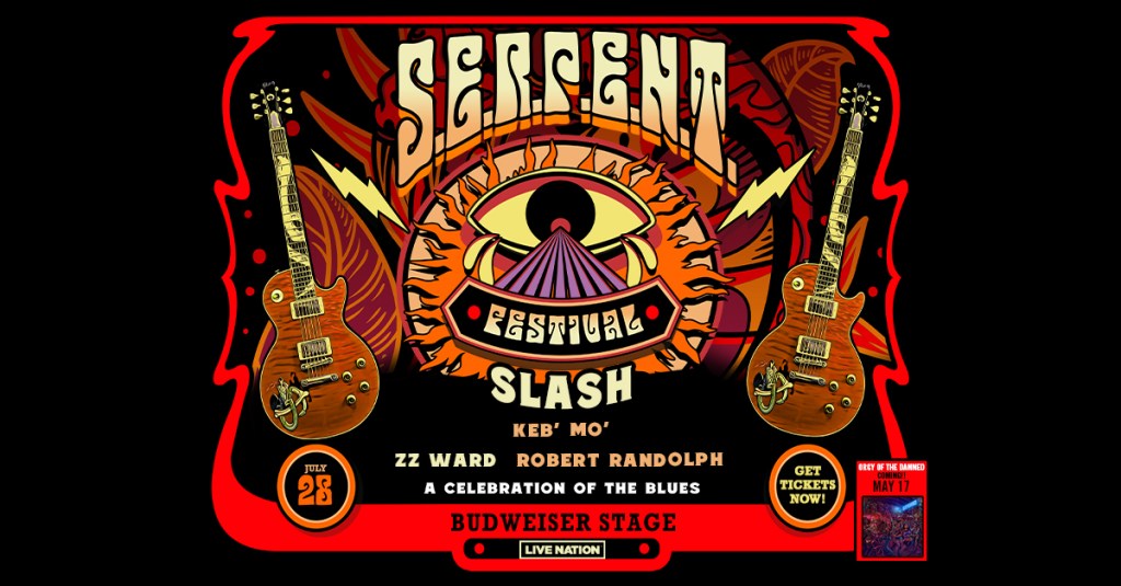 SLASH at Budweiser Stage Where Budweiser Stage, 909 Lake Shore Blvd W, Toronto, M6K 3L3 Map When Jul 28/24 07:00 PM - Jul 28/24 11:00 PM Age All Website https://www.ticketmaster.ca/event/10006068FDEB438A SLASH: S.E.R.P.E.N.T FESTIVAL with Keb’ Mo’, ZZ Ward & Robert Randolph Sunday, July 28th Budweiser Stage TICKETS ON SALE FRIDAY, MARCH 15TH @ 10 AM LOCAL
