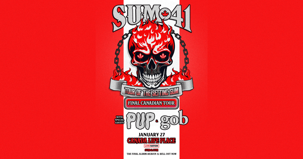 Grammy-nominated band Sum 41 has announced the official Canadian leg of their last ever headlining world tour, ‘Tour Of The Setting Sum’, to celebrate the upcoming release of their final album Heaven :x: Hell. As previously announced Sum 41 will make stops in the United States, Japan, Mexico, Germany, Italy, and more, and will perform their largest show to date in front of a sold-out crowd of over 35,000 at Paris La Défense Arena in France later this year before the official Canadian leg of the tour and their final shows as a band in Toronto, Ontario, on January 28 and 30, 2025, at Scotiabank Arena.