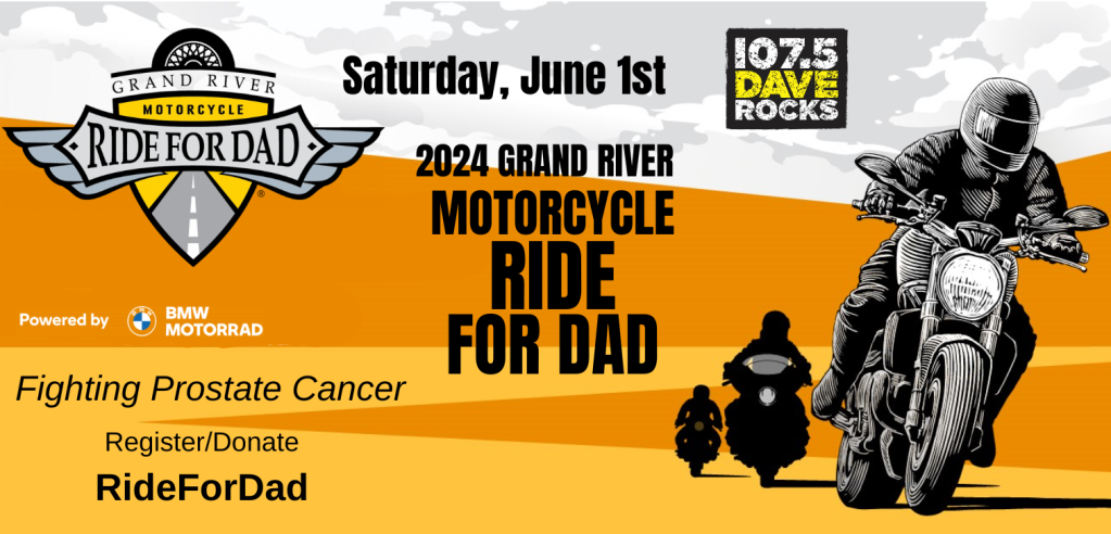 Riders will leave the Sportsworld parking lot at 9:30am, led by Waterloo Regional Motorcycle Officers. Approximately 500 motorcycles will be flying Ride For Dad flags and parading to promote Prostate Cancer Awareness.